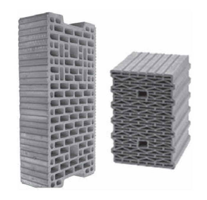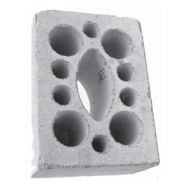 Leichtbetonsteine sind ebenfalls Vollsteine mit porigem Gefüge (meist viele Poren und relativ geringe Druckfestigkeit). Bekannt als Schwemmstein oder Vollstein aus Blähton (Liapor, Leca).